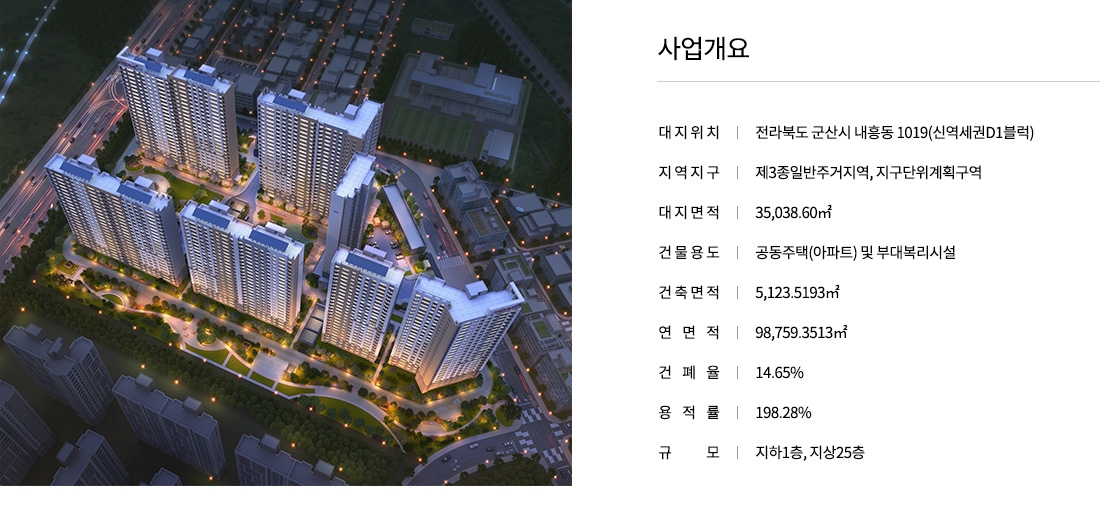 군산 내흥동 일원에 공급되어 구도심 재편과 신도심 개발의 수혜를 동시에 누리는 주거 중심지로 떠오릅니다.